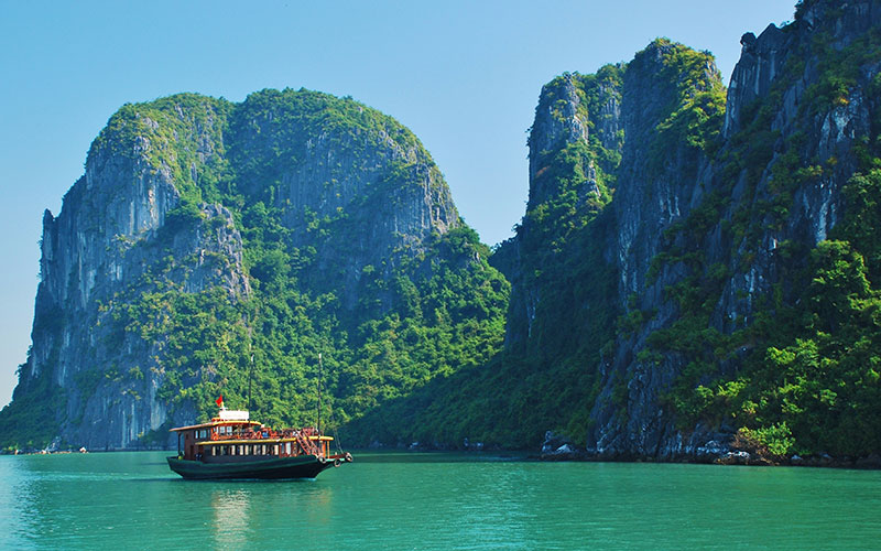 ハロン湾は、ベトナム北部に広がる世界遺産の海上景勝地で、約1,600もの奇岩や石灰岩の島々が点在する幻想的な景観が魅力です。
