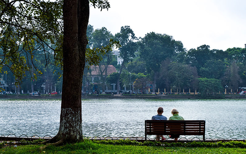 早朝には太極拳をする人々や散歩を楽しむ市民の姿が見られ、ハノイの日常を感じられるのも魅力です。