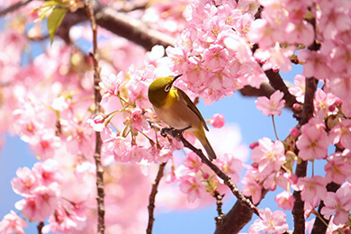 発祥地である静岡県河津町では「河津桜まつり」が開催され、2月から3月頃までの約1か月間、川沿いに約3.5km続く圧巻の桜並木をお楽しみいただけます。